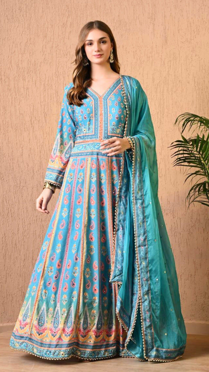 This Anarkali suit with dupatta is the perfect choice for a chic and elegant look. Made with high-quality materials, it offers both style and comfort. The flowing Anarkali silhouette and the beautifully designed dupatta add a touch of glamour to any occasion. Elevate your wardrobe with this stunning ensemble.
